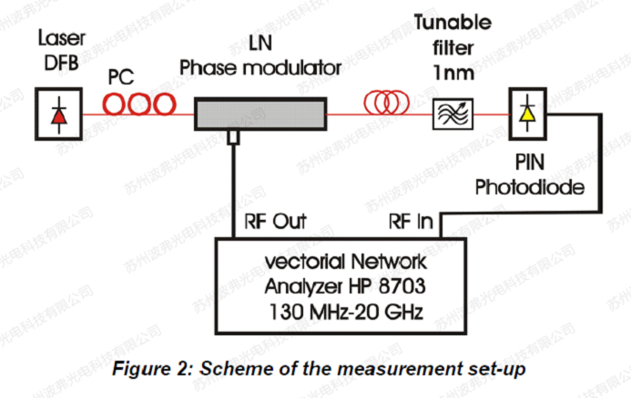 現在,如果用退火質子交換技術APE來制作的電光調制器,就不能直接實現上面鈦擴散調制器帶寬的測量方法。最簡單的解決方案是在光纖馬赫-曾德M-Z干涉儀的一個臂上加入相位調制器。然而,這種干涉儀的熱不穩定性很難控制。因此,頻率響應會由于這些不穩定性而產生畸變。
