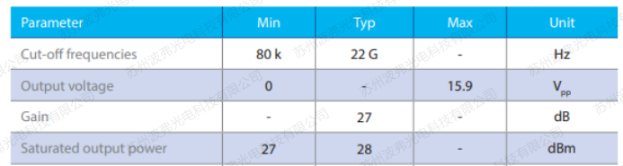 2. 相位調制器所需的驅動電壓高于強度調制器,在高頻應用時(例如>30GHz)可能很難找到合適的驅動放大器輸出10Vpp以上的電壓