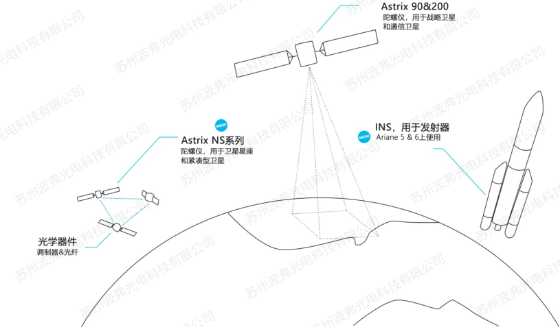 iXblue積累了大量的FOG應用在宇航領域的經驗,同時開辟了宇航器件市場,如無源器件和摻雜光纖,以及鈮酸鋰電光相位和強度調制器。