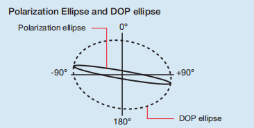 在這種情況下,DOP橢圓表示用于光纖對準E,其中模擬了使用旋轉線性偏振器的偏振測量。DOP橢圓(虛線)變成一個圓,表示完全去偏(消偏)的光。