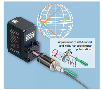 SK0101偏振分析儀可用于校準和量化延遲光學器件,例如 Sch?fter+Kirchhoff 生產的集成四分之一波片的光纖準直器)。