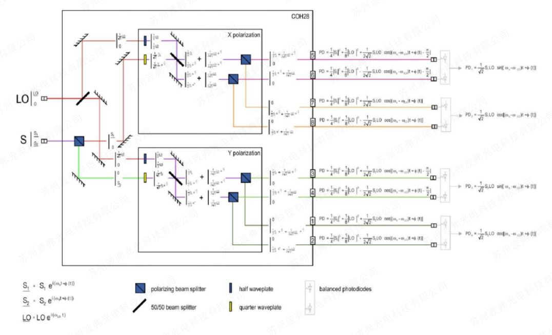 COH28和COH28-X基于兩個(gè)單偏振90°光混頻器,能夠從具有任何偏振的信號(hào)中提取相位、幅度和偏振。