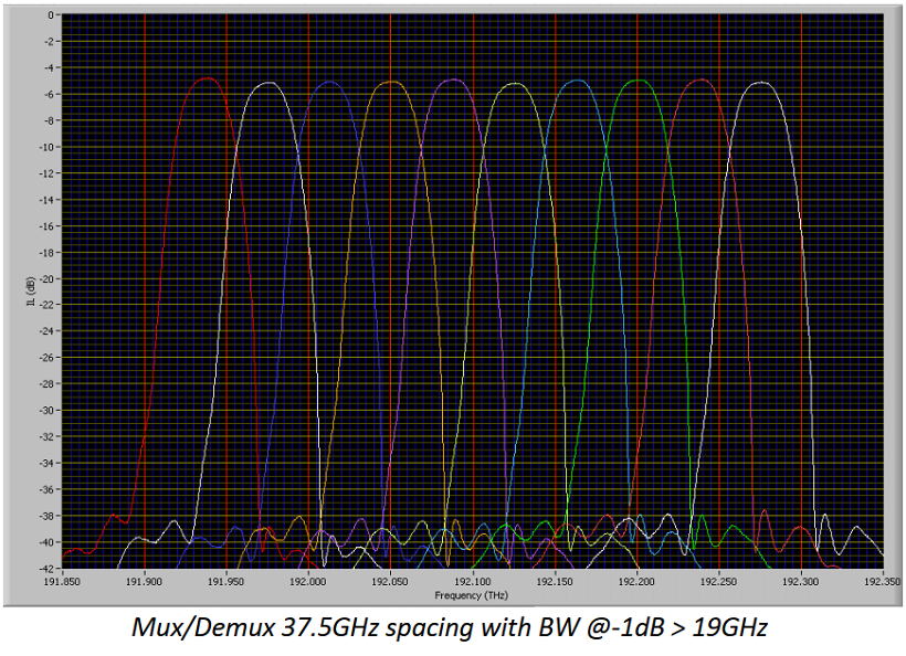 由于我們技術的多功能性,我們能夠提供最完整的DWDM Mux/Demux范圍,間隔從6.25GHz到400GHz。
