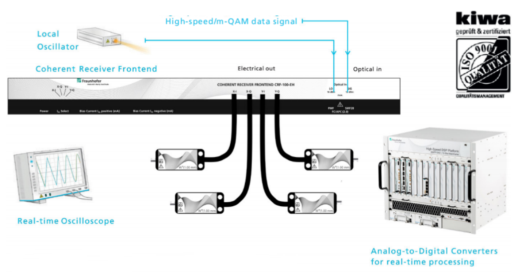 緊湊型19英寸機箱中的光學相干接收機,100 GHz帶寬,包括C或L波段可選LO激光器,高速光學雙偏振m-PAM和m-QAM信號的相干檢測。